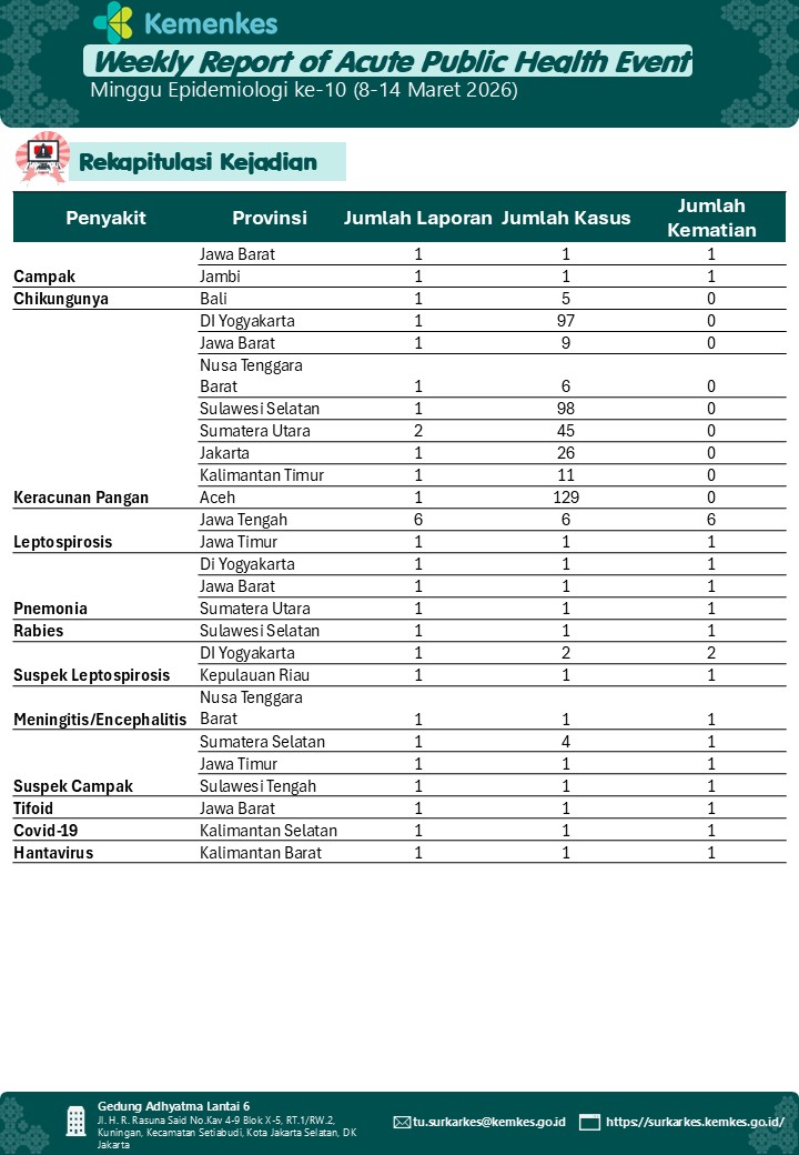Weekly Report of Acute Public Health Event - Week 10 (March, 8 - 14 2026)
