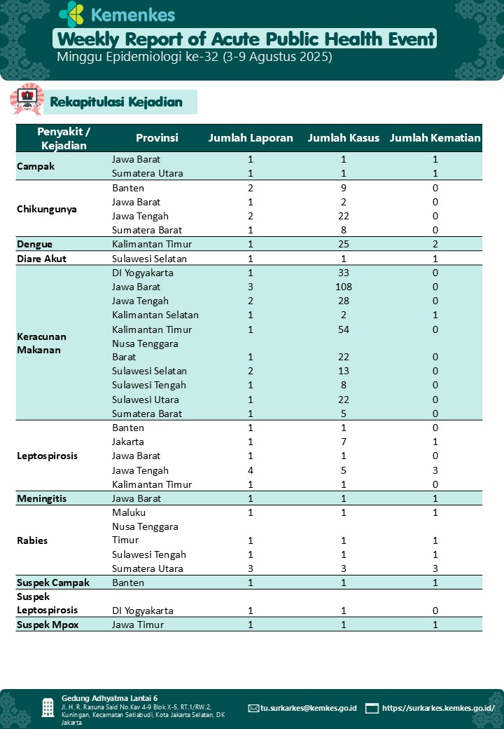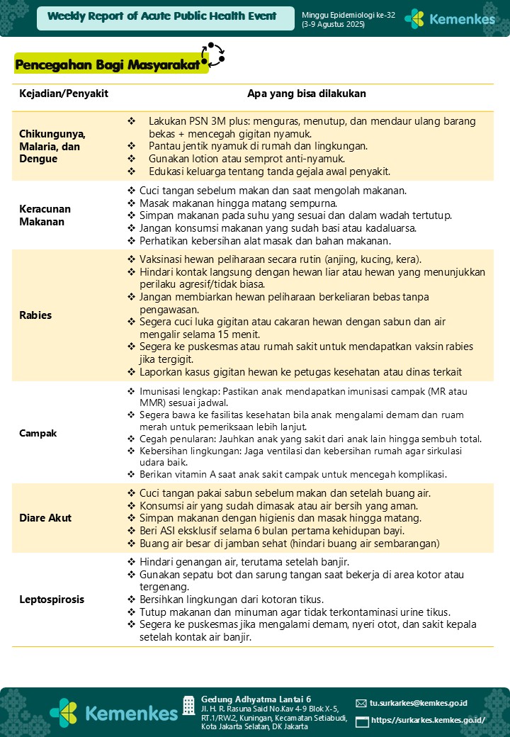 Weekly Report of Acute Public Health Event - Week 32 (August, 3-9 2025)