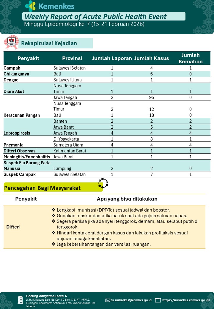 Weekly Report of Acute Public Health Event - Week 7 (February, 15 - 21 2026)